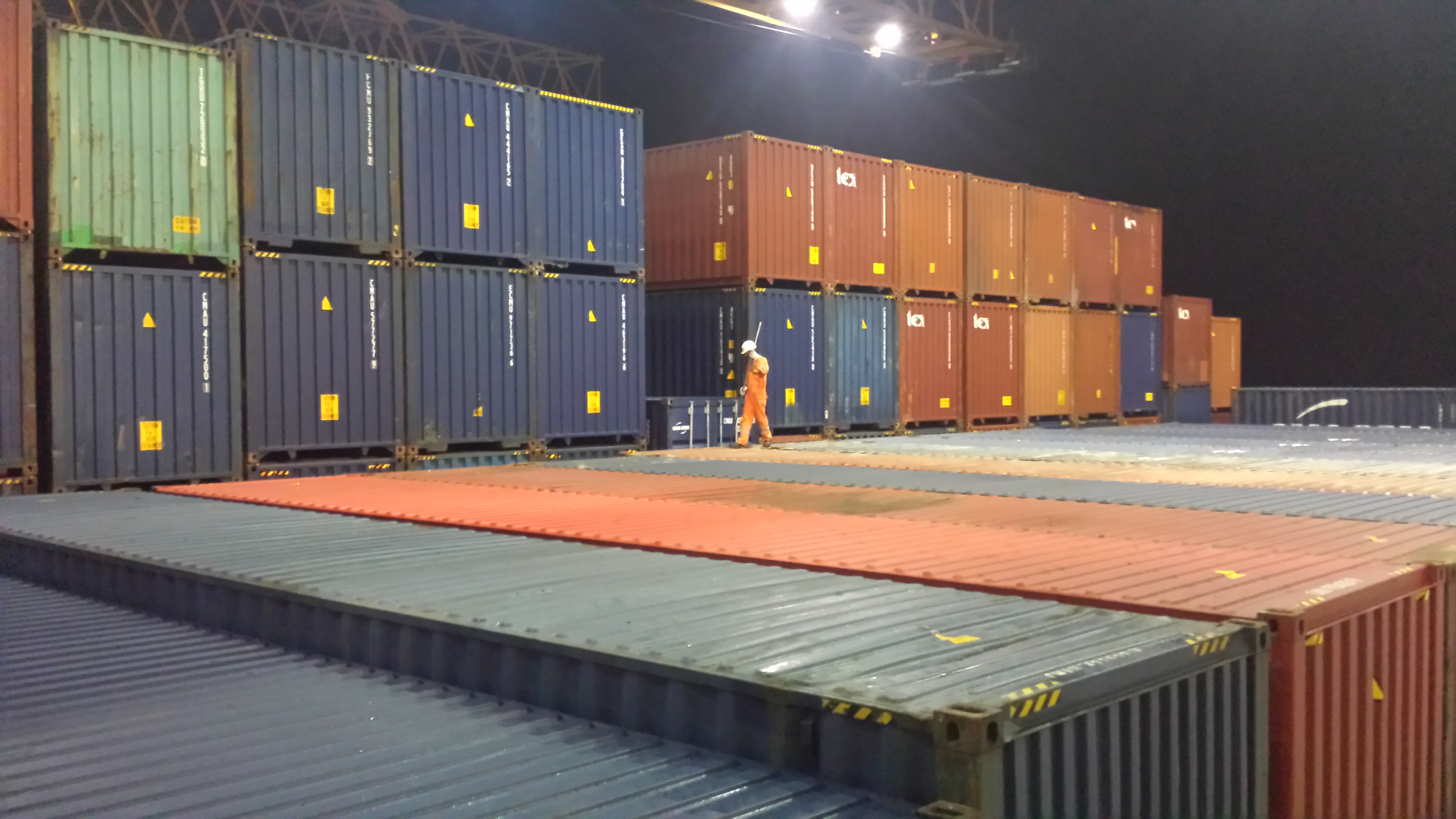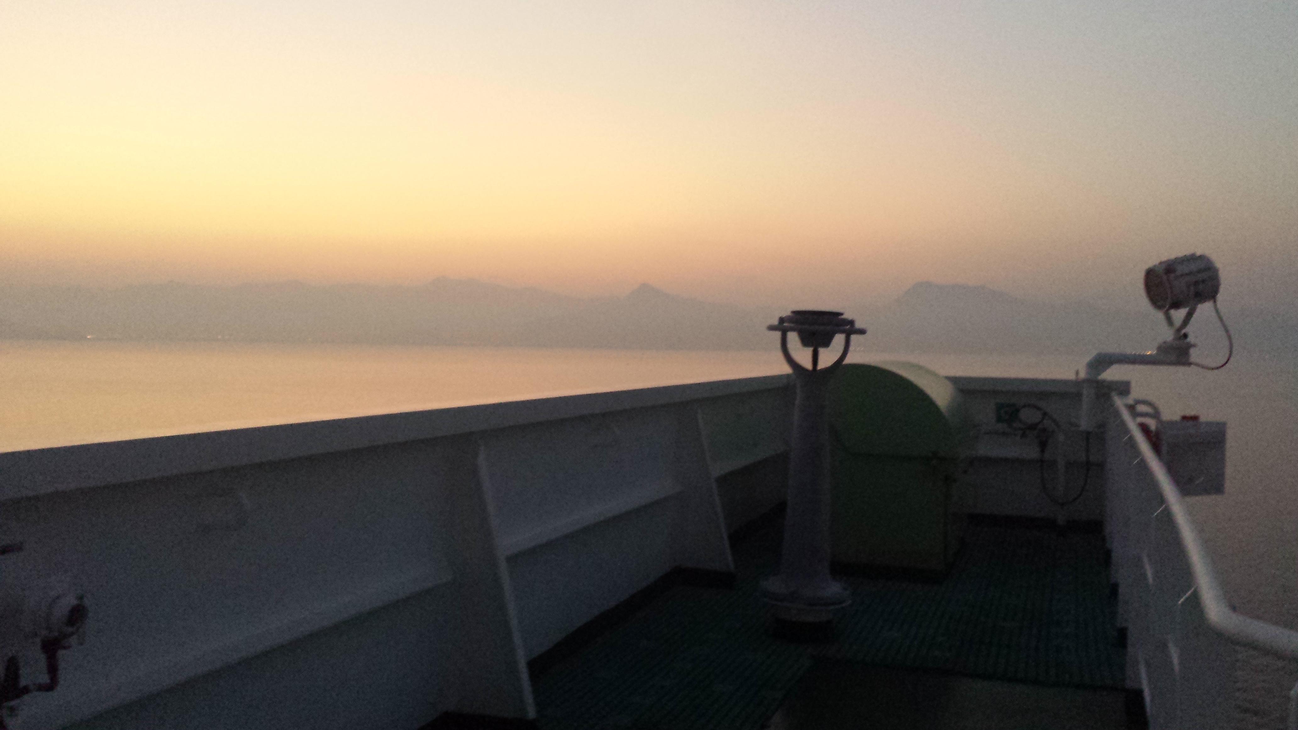 But in any case, what I noticed today was the speed of loading and unloading which was entirely incomparable with Marsaxlokk. Things move here at breakneck speed. The cranes’ spreaders were already down on the ship before it had even stopped moving last night and there were empty flatbeds gathering there. Today, I watched as multiple containers were being moved at a time, which can’t possibly be safe. I only saw two stacked 40TEU containers at a time being moved but the chief mentioned that on a previous occasion he had seen them move six empty containers stacked on top of one another at one time, which sounds insane. The chief was mentioning how unsafe China was though, and as an example talked about a guy who gets on the crane’s spreader and gets on top of the containers with his pole to unlock the containers. I mentioned that this was happening last night, which surprised him a bit. The chief seems to think things are superlative in China: everything is more unsafe; rules are more often disobeyed; the tugboats are more powerful there; and arrival in the ports are far more terrifying because of all the fishing boats crowding the shipping lanes (on this point, absolutely everyone else seemed to be in consensus).